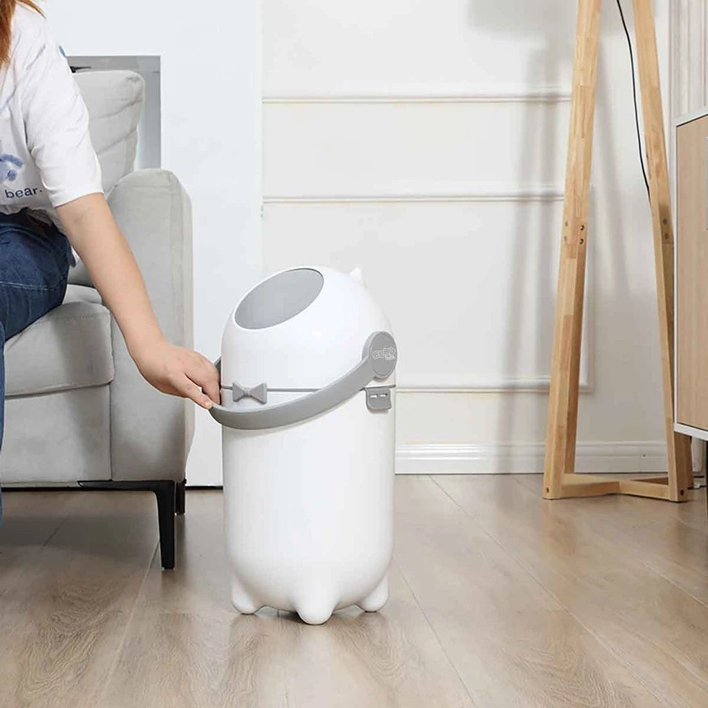 Uma lixeira dedicada ao descarte de fraldas facilita as trocas diárias, ocultando o mau cheiro comum das lixeiras tradicionais. Sua tampa com fechamento giratório sela os odores, enquanto a barreira anti-odor bloqueia a saída de cheiros indesejados. Além disso, a alça é confeccionada com material tratado para ser antibacteriano e antiviral.